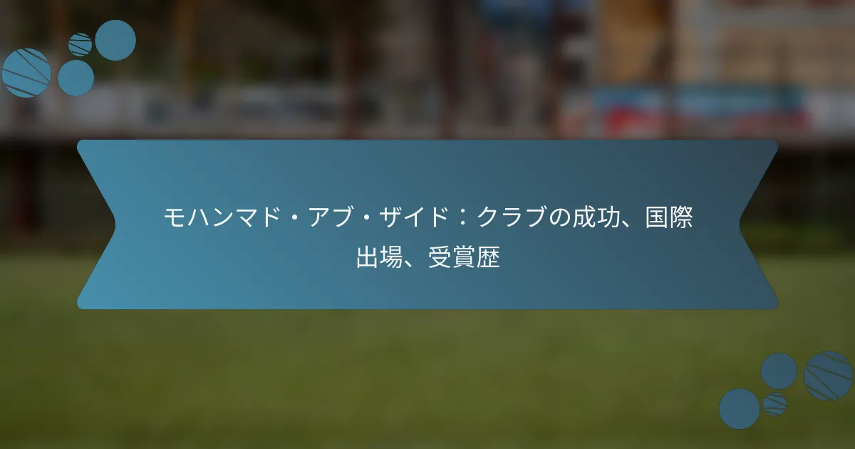 モハメド・アブ・ザイドは、数々の選手権や際立ったパフォーマンスによって、クラブレベルでの重要な成功を収めています。彼の貢献は、チームを高めるだけでなく、スポーツ界での重要な選手としての評判を確立しました。